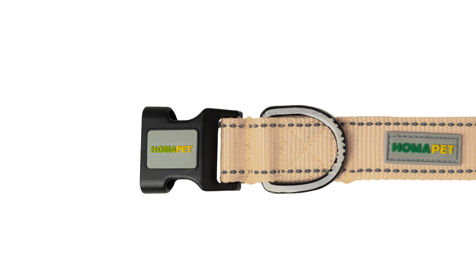 - Strong metal D-ring for easy leash and ID tag attachment.