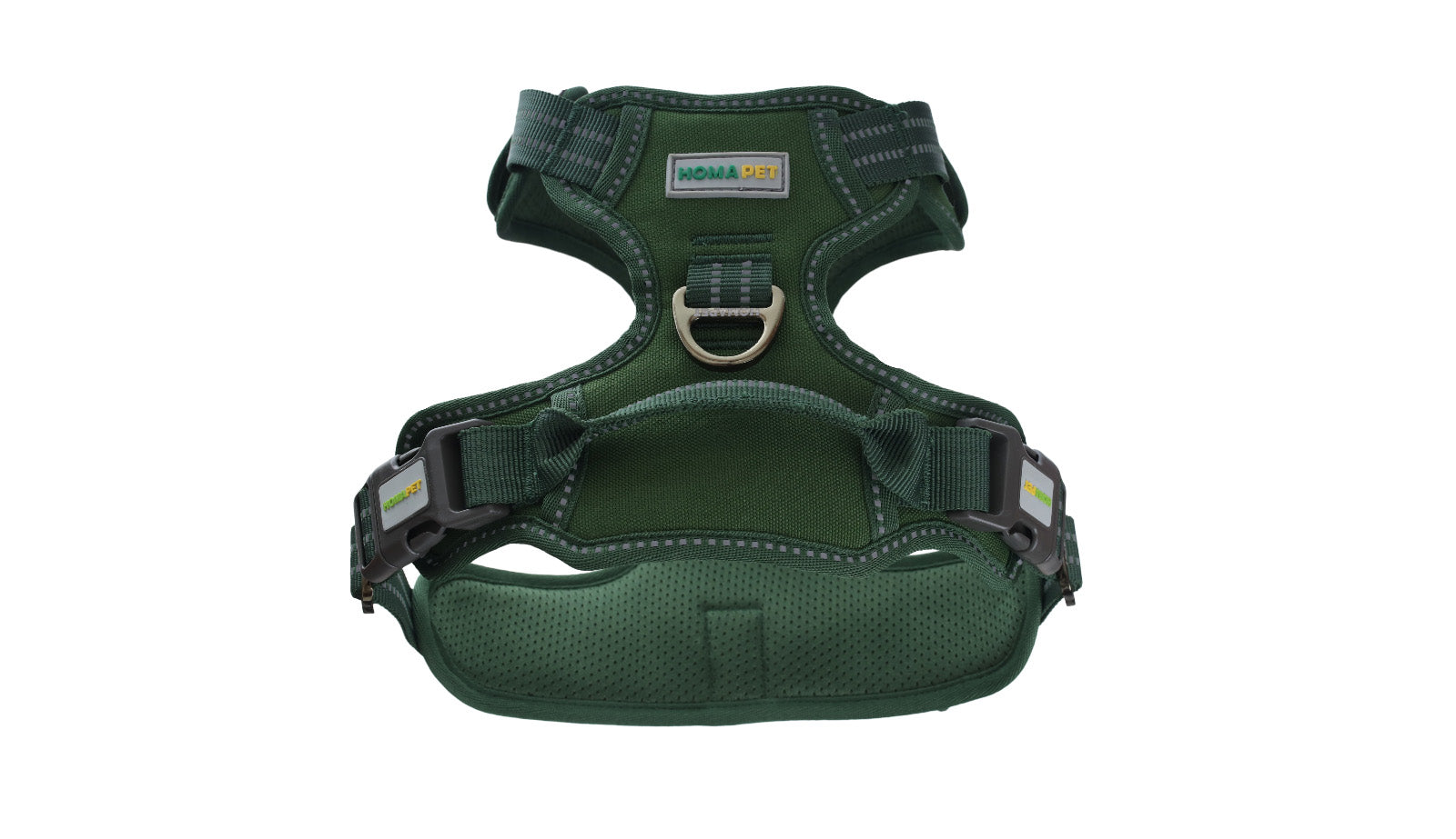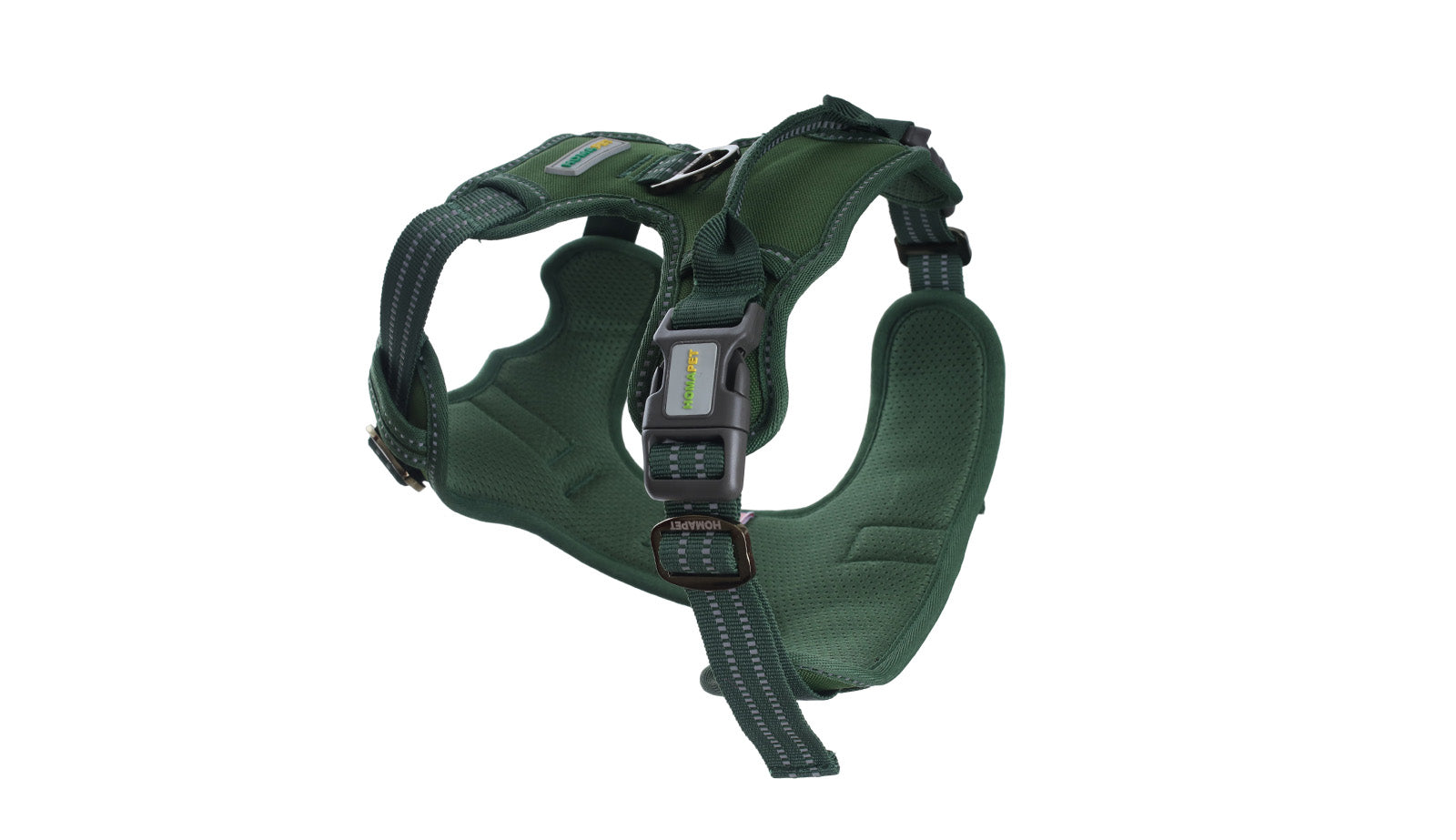 - Two metal leash attachments: back clip for casual walks, front clip to discourage pulling.